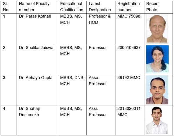 List of faculty members: