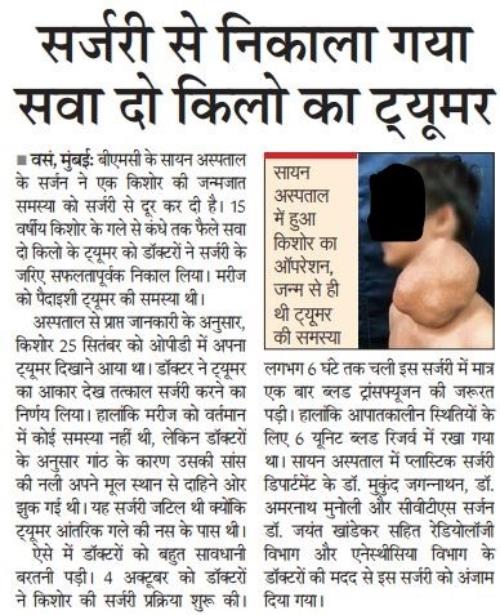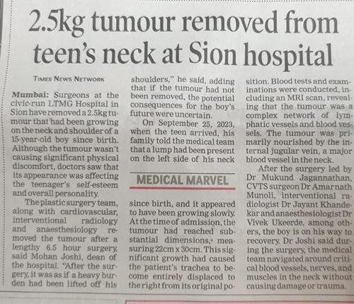 2.5 Kg Tumour was removed from a teen aged male, after an extensive Surgery at LTMMC and LTMGH.